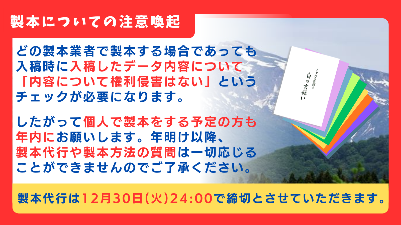 ・安達が製本を受け付けるわけではありません。(商品の販売ではありません)